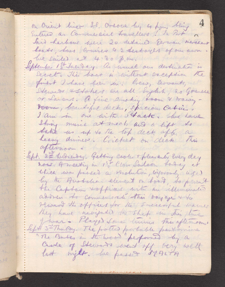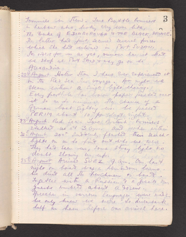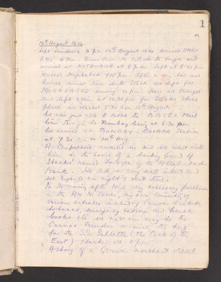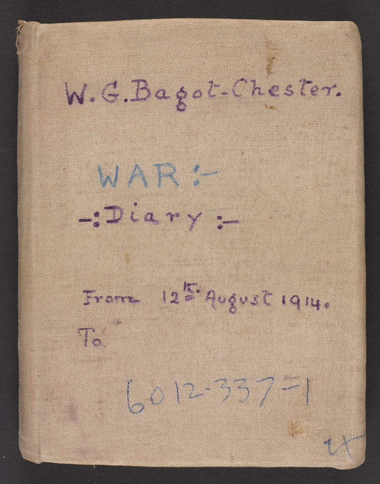 One of two war diaries of Bagot-Chester (1887-1918), covering the period, 12 August 1914 to 4 December 1914 in India and France.