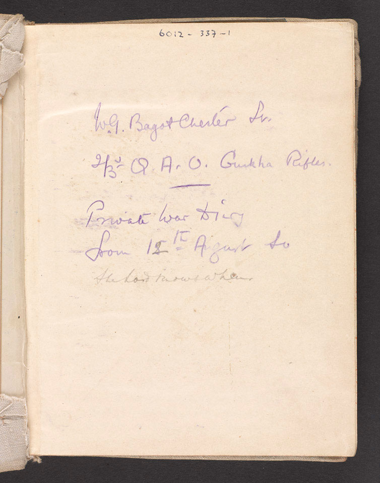 Diary, Major Walter Greville Bagot-Chester, 3rd Queen Alexandra's Own Gurkha Rifles, August-December 1914