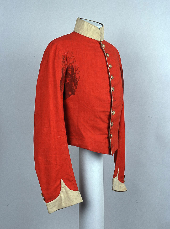 Shell jackets, reminiscent of Eton College jackets, were authorised for wear in place of the undress coat by infantry officers from 1829. They continued to be worn until 1856 when they were replaced with looser fitting frocks. The 1857 Dress Regulations authorised the white piping shown on the front edge of this jacket. Modified versions of the shell jacket subsequently evolved into mess dress.