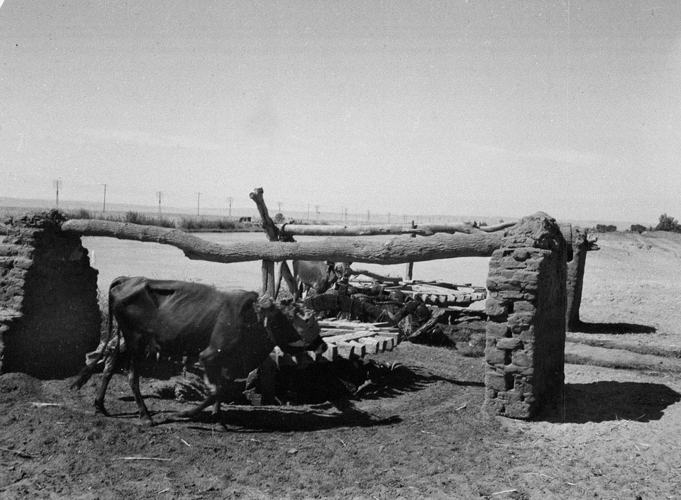 Sakieh waterwheels, operated using buffalo, were used to raise water to irrigate agricultural land.