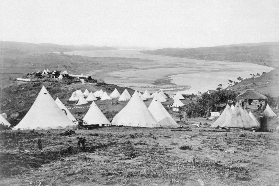Bell tents such as those shown in this photograph were used extensively by the British Army during the 19th and 20th centuries. Spacious, easy to erect, and durable in bad weather, they proved to be a highly effective design.