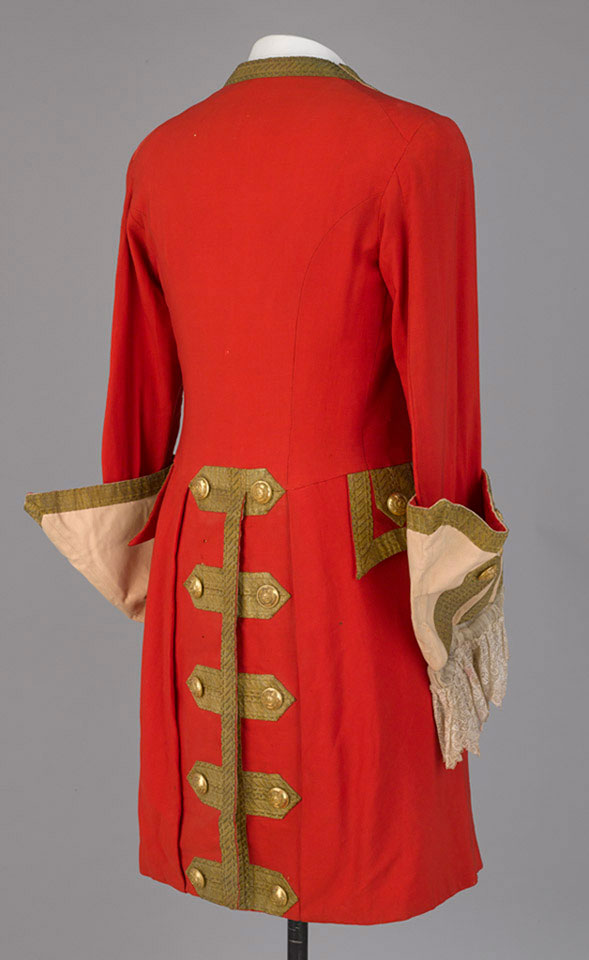 Red coat with buff facings and gold lace, made for a Pageant in 1895 (c)