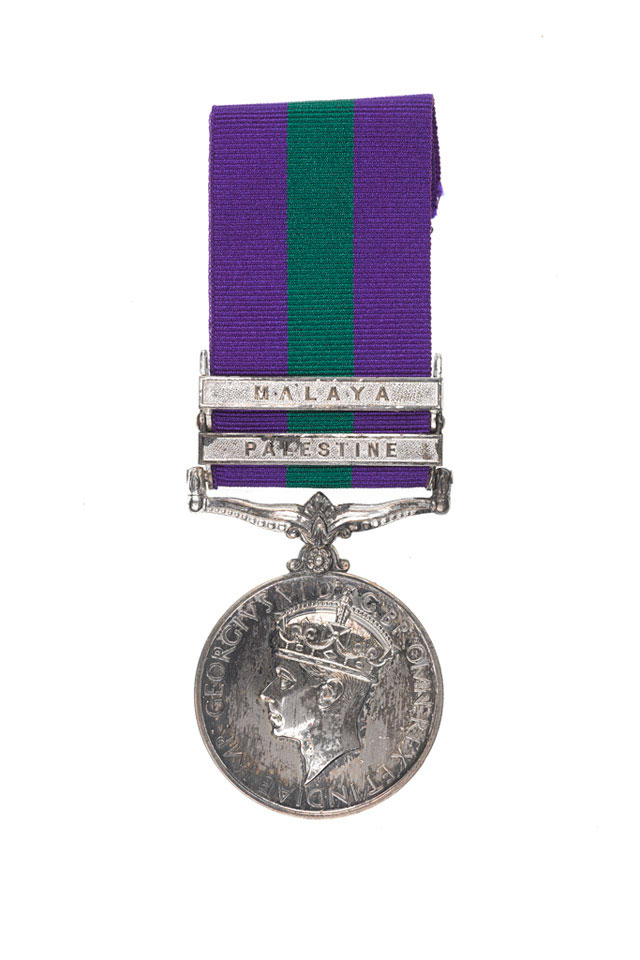 General Service Medal 1918-62, with clasps, 'Malaya', and 'Palestine', awarded to Lieutenant Colonel Harold Sewell Knocker, The Buffs (Royal East Kent Regiment)