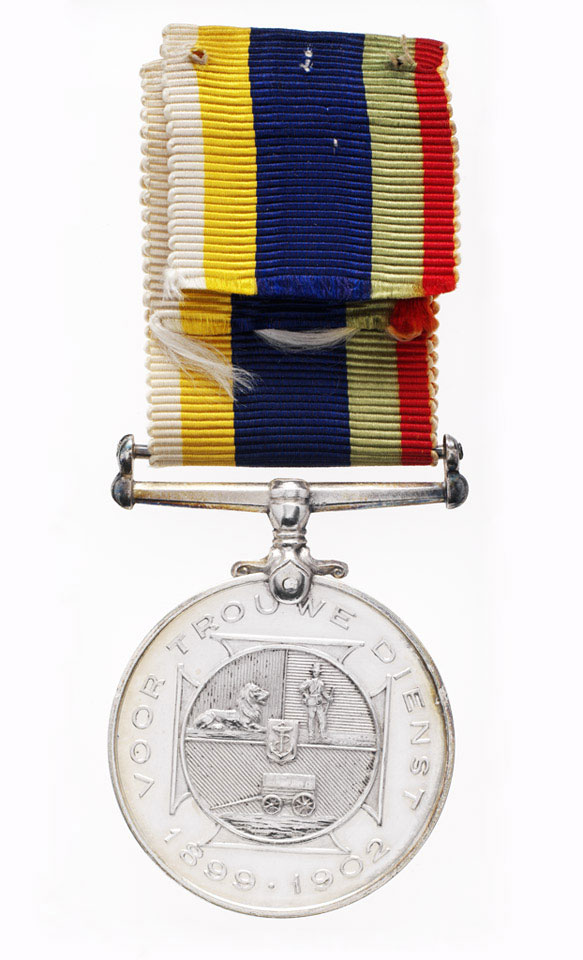 Instituted in 1920, this medal was awarded by the Union of South Africa to officers and men of the two former Boer republics for distinguished service during the Boer War (1899-1902). Awards had to be individually claimed on prescribed forms and were named with rank, initials and surname of the individual.