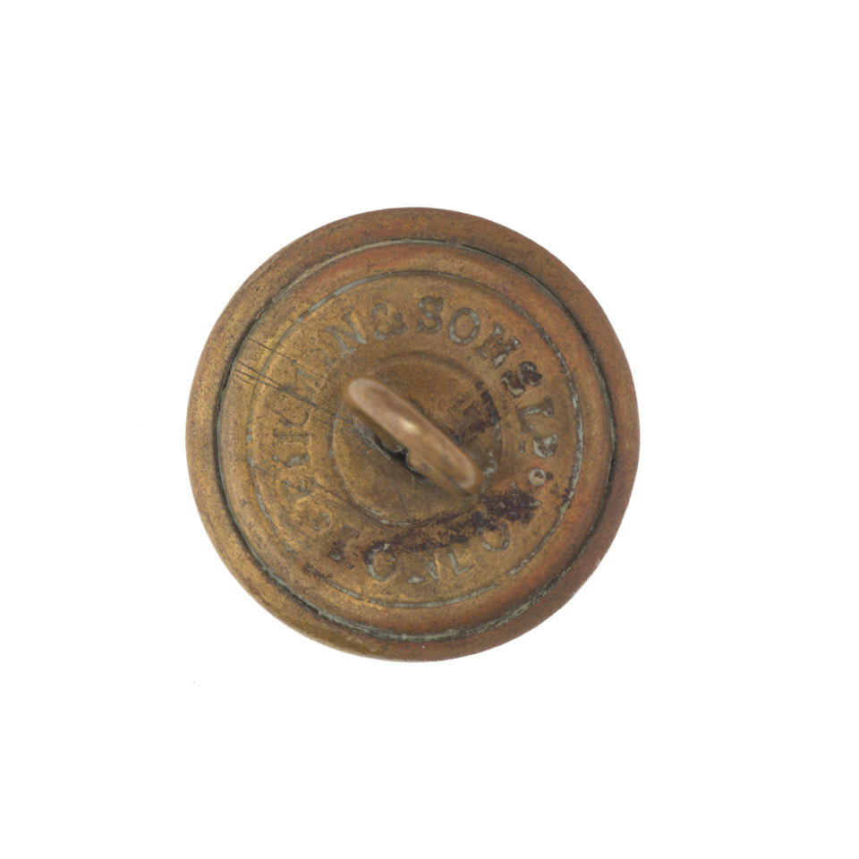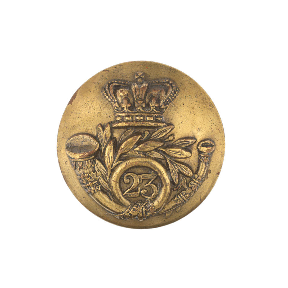 Large, brass button by Firmin and Sons Limited, London, with bugle horn encircling regimental number, '23', with branch of leaves, surmounted by an Imperial Crown.
