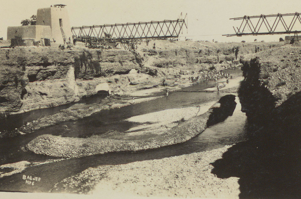 Construction of the first bridge over the Bara River, Waziristan, 1930