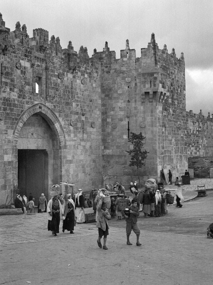 'Porters. Outside Damascus Gate', Jerusalem, Palestine, 1943
